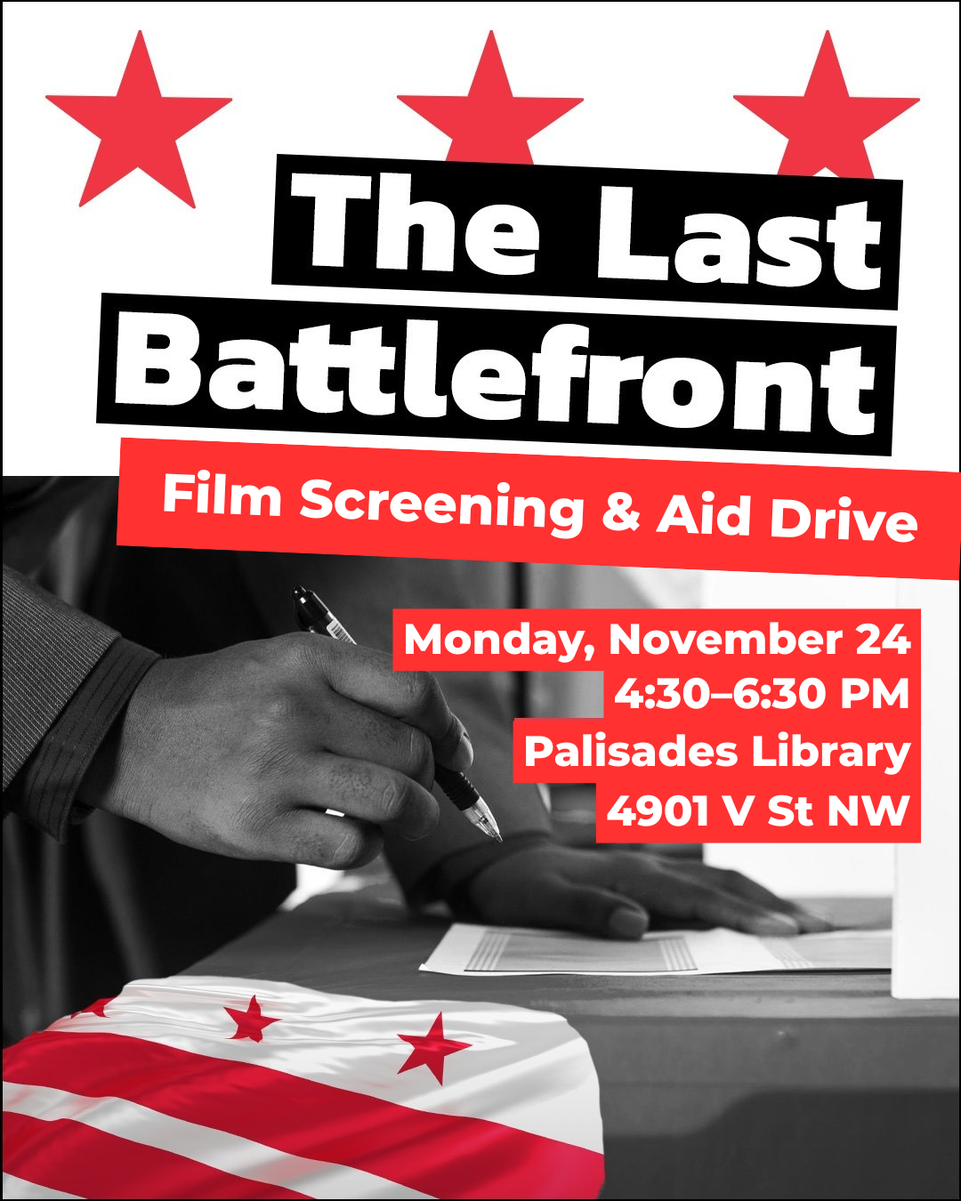 The Last Battlefront: Quest for the Vote in Washington, D.C. is screening at the Palisades Library on Nov. 24, 2025.